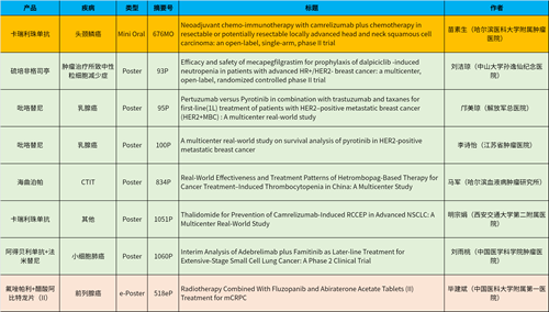 在头颈肿瘤、乳腺癌、肺癌、前列腺癌等多个疾病领域,卡瑞利珠单抗、阿得贝利单抗、吡咯替尼、氟唑帕利、法米替尼、醋酸阿比特龙片(II)等抗肿瘤新药相关研究一共入选了1项简短口头报告、4项壁报展示和1项电子壁报,彰显了AG真人医药强劲的研发实力。